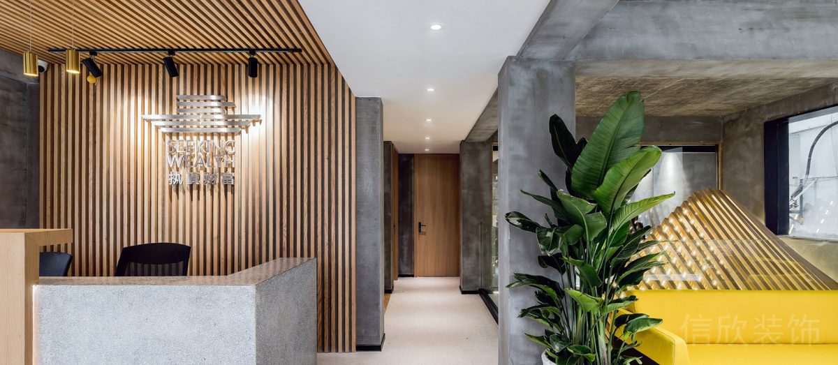 坂田神州百瑞達大廈原木風藝術木飾面辦公室裝修設計