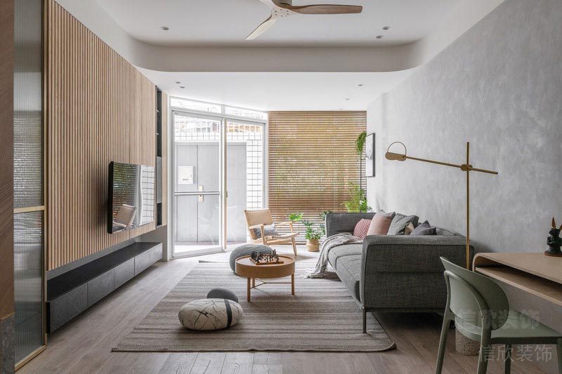 淺色木紋地板,搭配灰色的墻面,清爽透亮,空間感強,光照充足,溫馨的氣氛中,盡情的享受日光的柔情