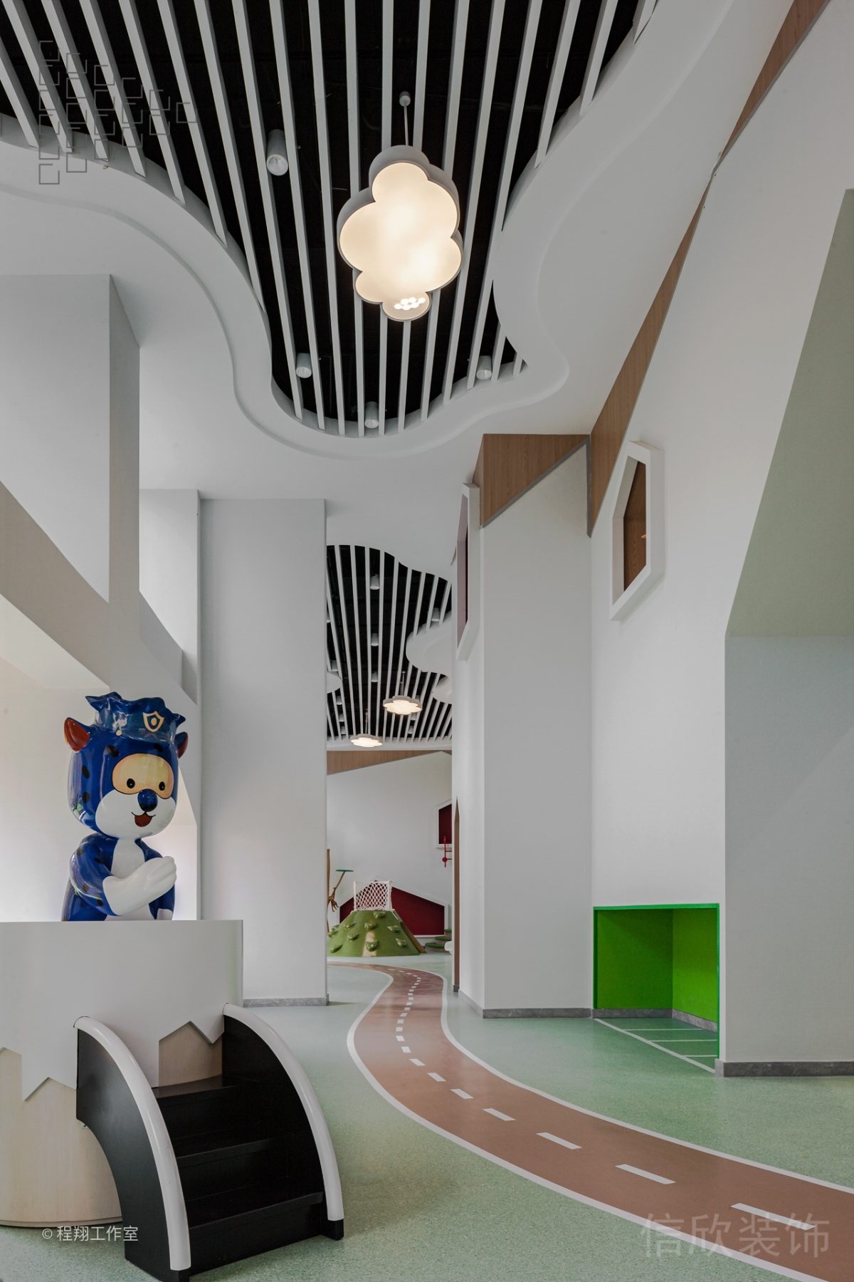 吊燈采用輕盈而柔軟的云朵形狀設計,使用布料制成,以營造出柔和的光線和舒適的感覺。