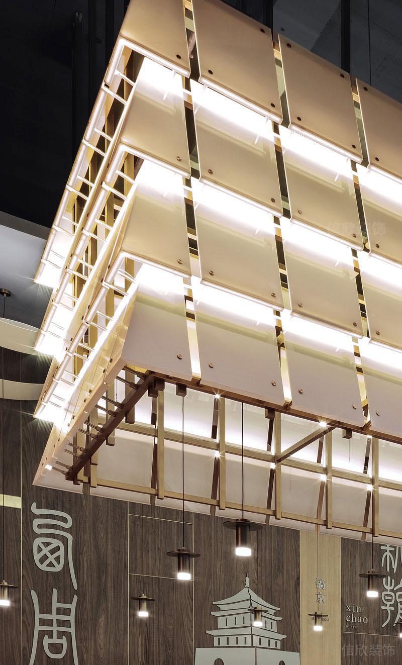本案位于深圳市福田區(qū)是一座新中式的面館裝修設(shè)計案例,設(shè)計師將厚重的歷史文化用現(xiàn)代材料及手法融入餐飲空間設(shè)計之中,從兵馬俑的鎧甲獲取靈感,將一片片鎧甲重新排列組合形成陣列的秩序感,震撼且新穎,給空間一個全新的符號,讓你一眼望上去滿是歲月風(fēng)過往,五千年的輝煌,五千年的滄桑;全部濃縮在了這一碗面里,讓你回味無窮,感慨良多。