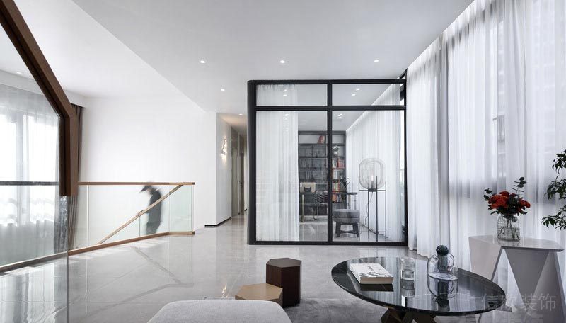 超脫的原木玻璃樓梯,現代感的水晶玻璃吊燈,簡單而脫俗。
