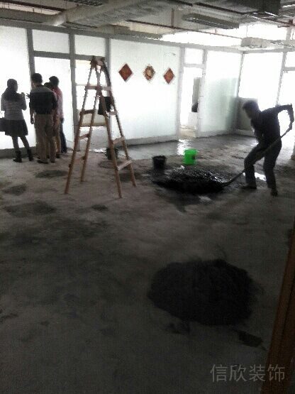 11月25日,所有需要拆除的都拆除好了,原地面有些損壞的地方正在修補。這些地面損壞是由于辦公椅在地面磨損的,也是因為上一家裝修的時候,地面找平水泥和河砂的比例不好,水泥放少了,所以地面不夠結實。