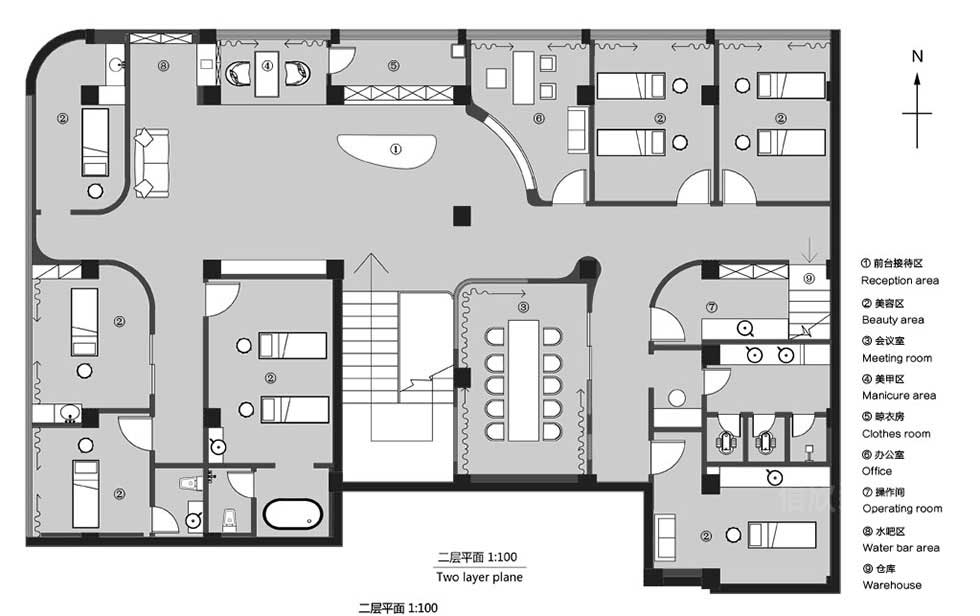 會議室采用通透的落地玻璃,讓大廳視野顯得更加開闊的同時,也使整個美容空間顯得更加的專業