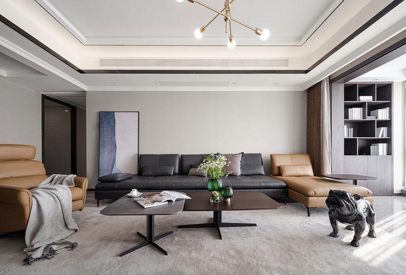 造型簡潔,線條流暢的家具組合搭配,營造出穩定、協調、溫馨的空間感受,滿足現代年輕家庭的輕奢需求。