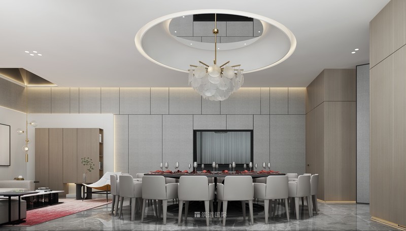 一層 | 20人包間② 包間以極致簡約風格為基調,它以更簡潔、硬朗的直線條替代了硬裝中許多紛繁復雜的元素,再配以低調奢華的別致軟裝元素來凸顯輕奢質感,在看似簡約的空間里濃縮著讓你意想不到的功能與細節,折射出一種隱藏的貴族氣質。
