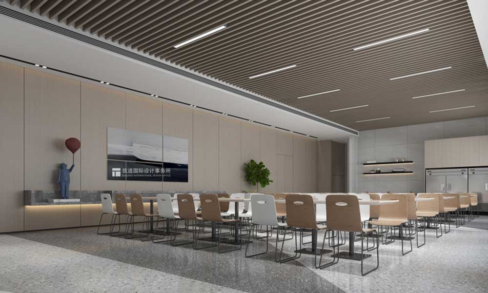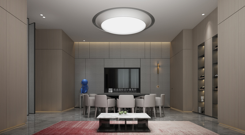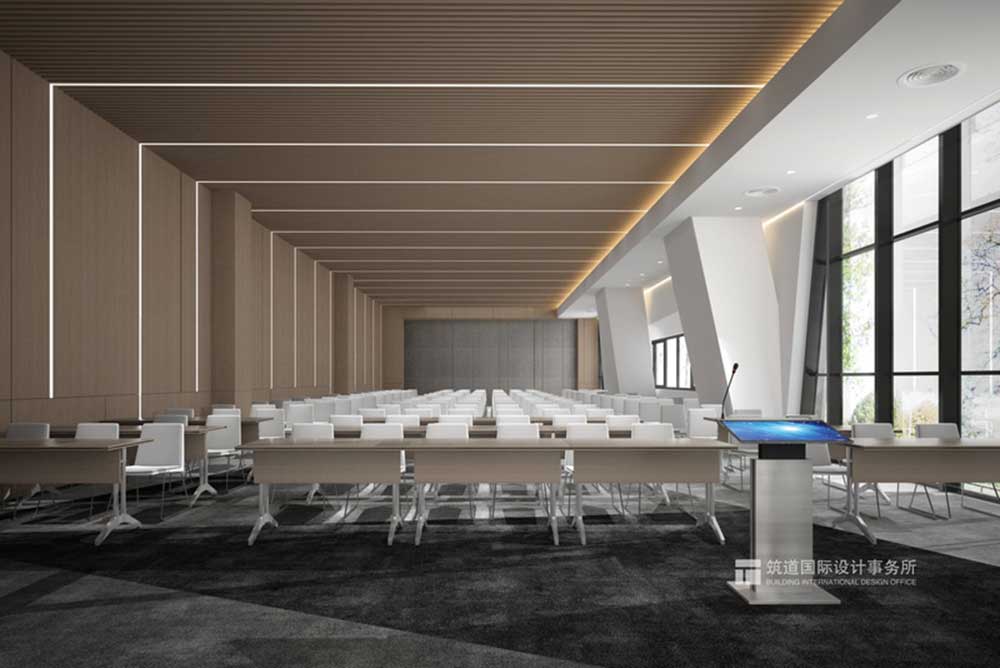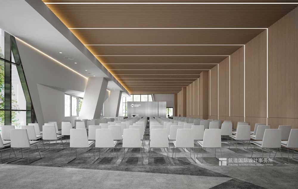 一層丨報告廳 報告廳以白色色調為主,米灰色色調為輔,更加突出會議室的嚴肅、大氣、干凈、利落。