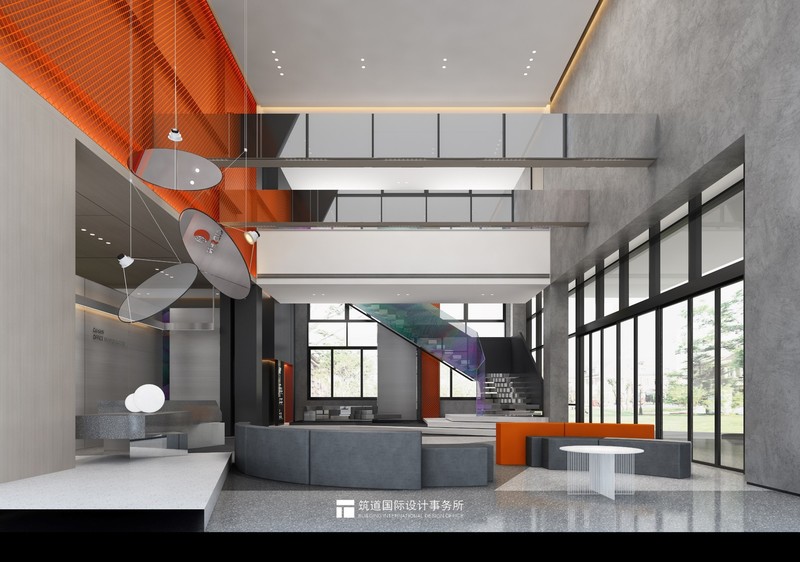 一層丨前臺 大廳整體以亮色為主調,搭配靈動的家具,給人活躍而熱情的視覺感官。結合企業文化,前衛而簡約的設計體現了品牌特有的美學理念。