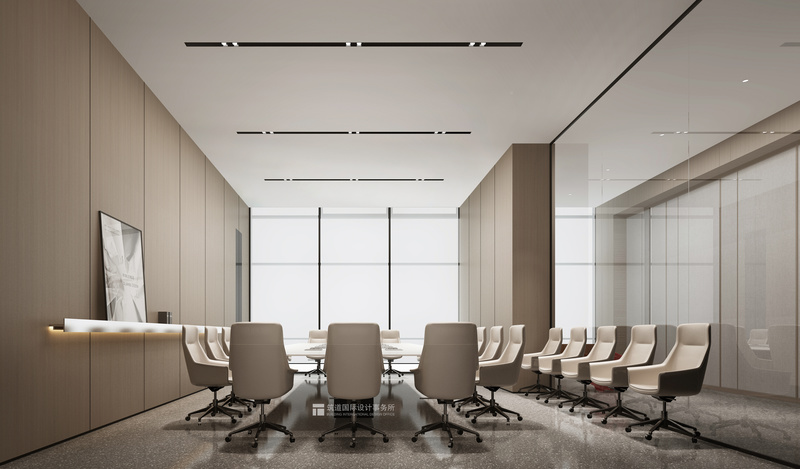 三層 | 視頻會議室 墻面色彩和軟裝相呼應,冷色調為主,體現出會議室的嚴肅。