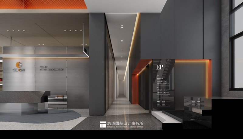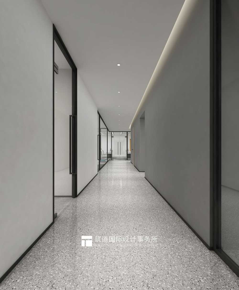二層 | 辦公過道 走道以黑白兩色呼應,成熟穩重,不會像白色太過于空洞,也不會像黑色太深沉。