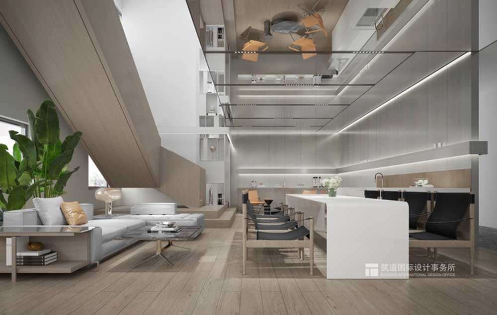 二層丨休息區 休息區是年輕員工的聚集地,以灰白色調相互運用,給予整體空間清爽而簡約。 員工可以在這里休憩聊天,也可以隨時隨地的辦公,讓辦公場地不再局限,更加高效。