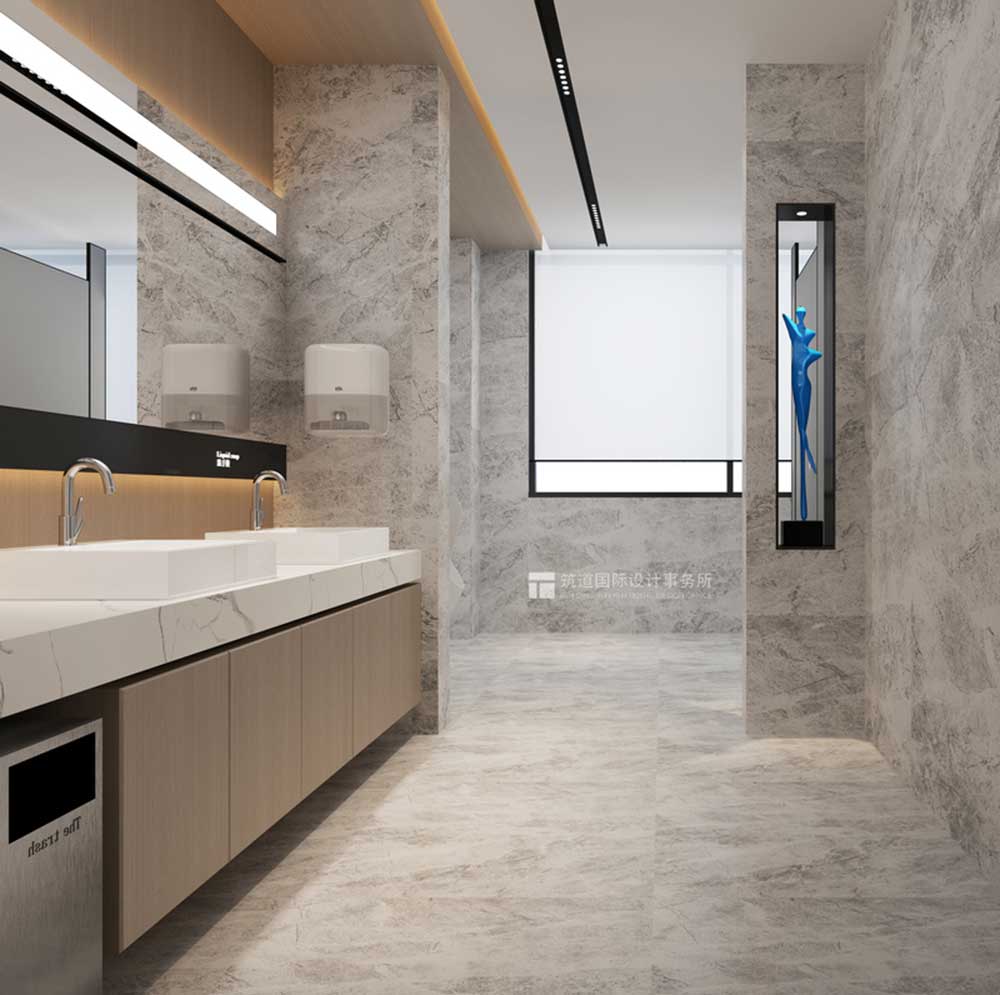 二層 | 衛生間 衛生間地面以大理石為主,簡約不簡單,營造出大氣的空間感與渾然天成的紋理感。