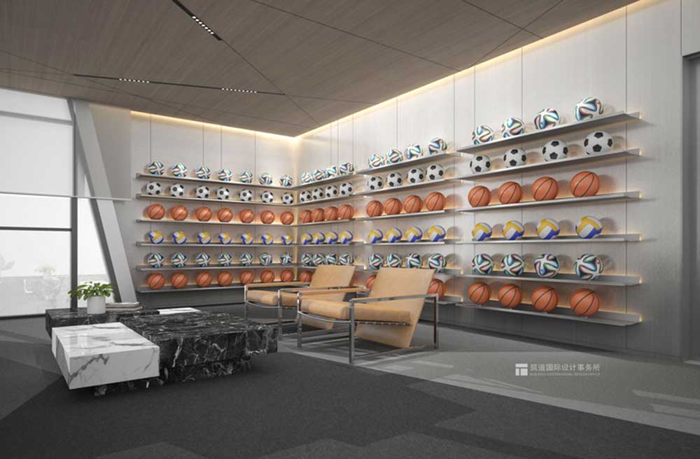 視頻會議室設計師采用了冷色調為主,用球(裝飾品)來裝飾,讓整個空間看起來沒有過于硬朗,反而有種舒適的感覺。