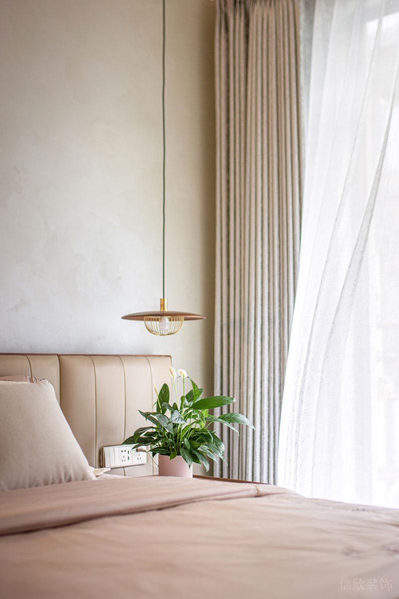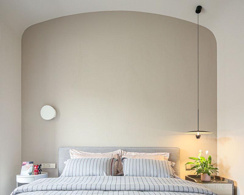 二樓是主臥,整個空間有很多圓弧元素 圓弧床緣、圓潤燈盞、古樸小桌,緩和有序 去掉尖銳的沖突,似主人緩和友好的生活態度 以及東方飾品,傳遞東方優雅大氣 以物會人,感知居者性情與愛好