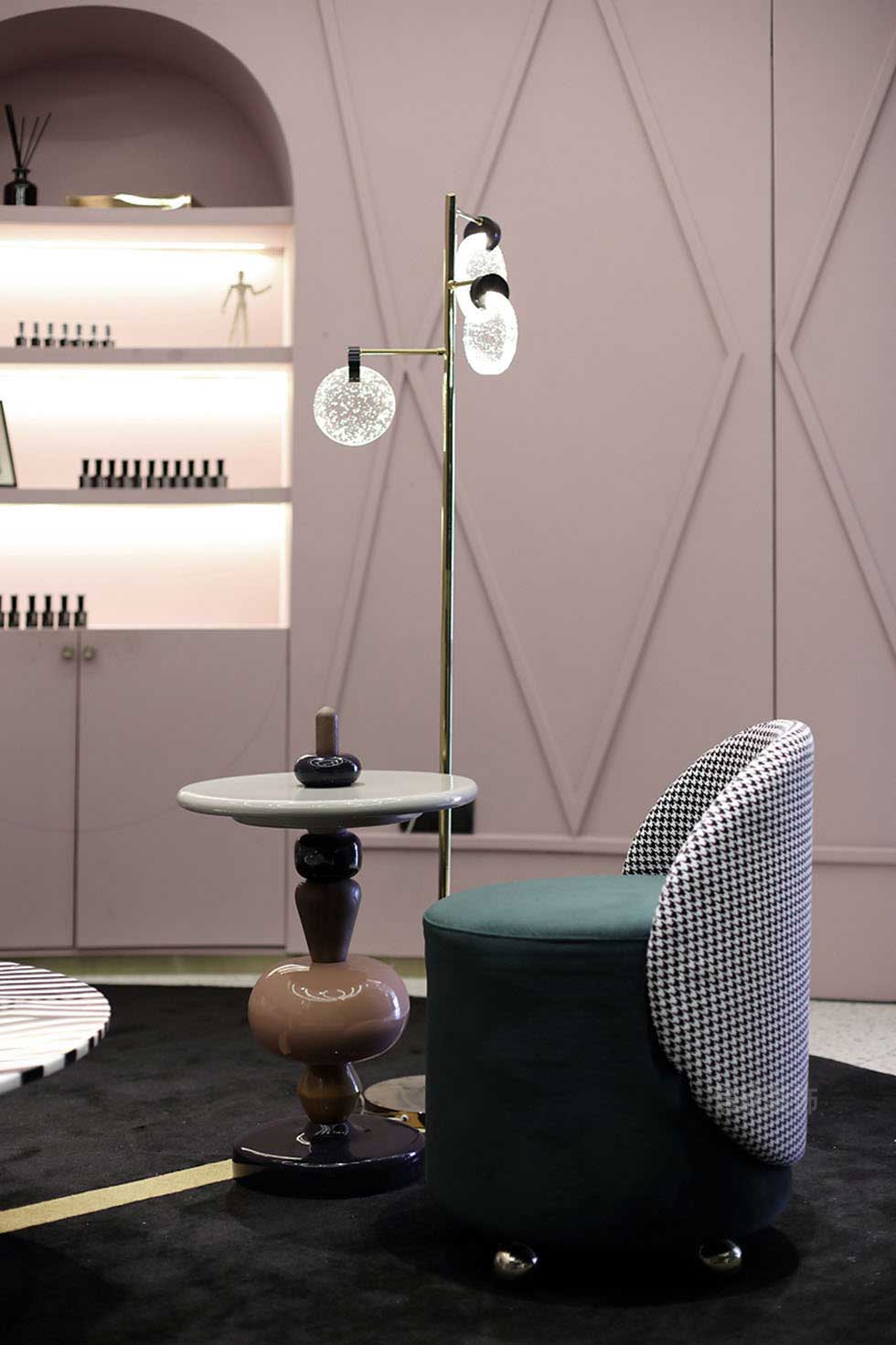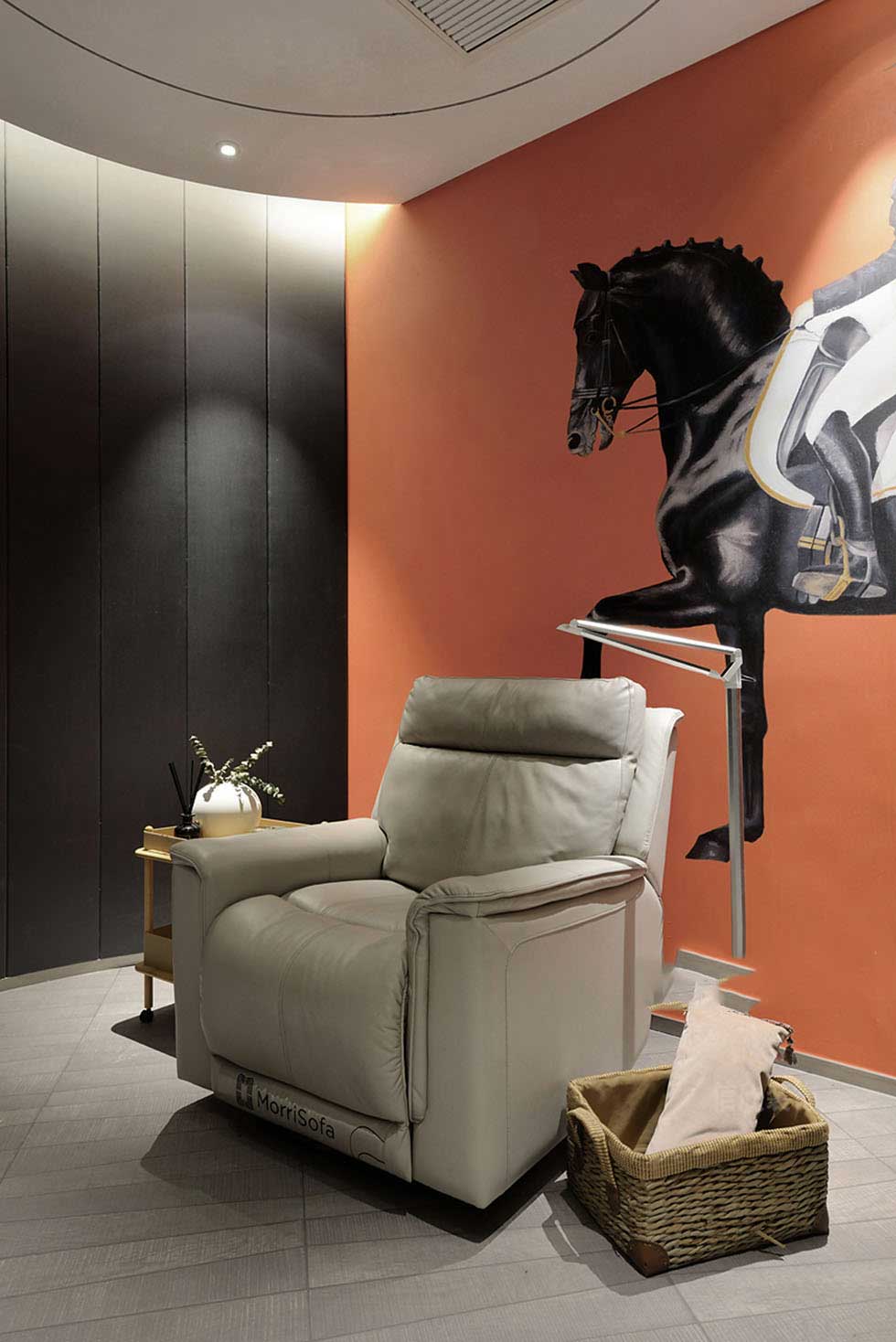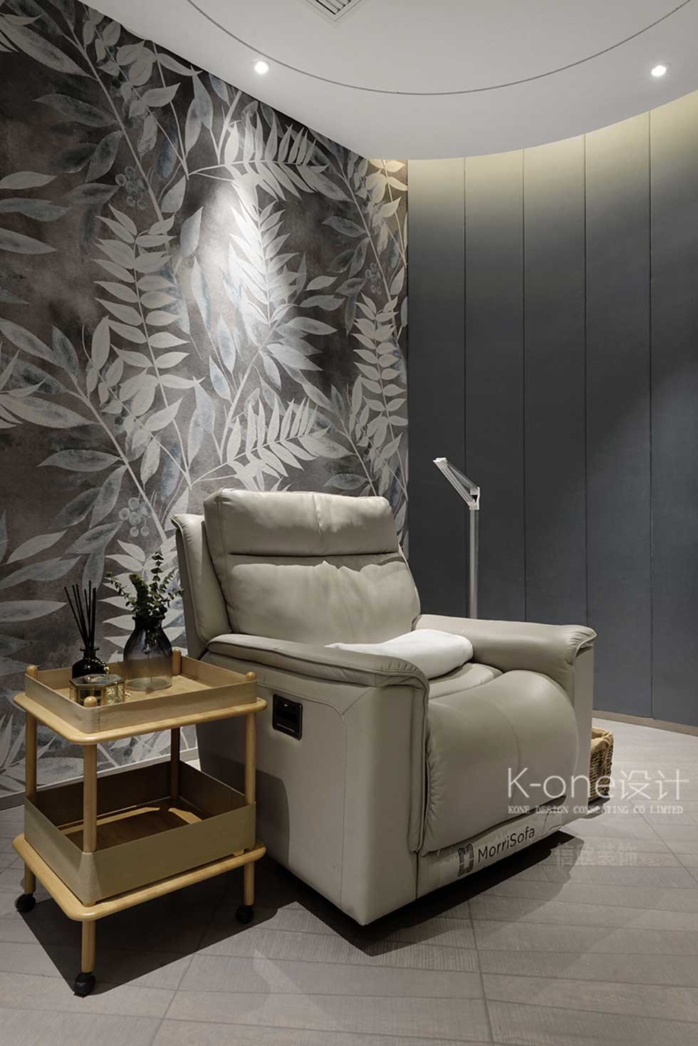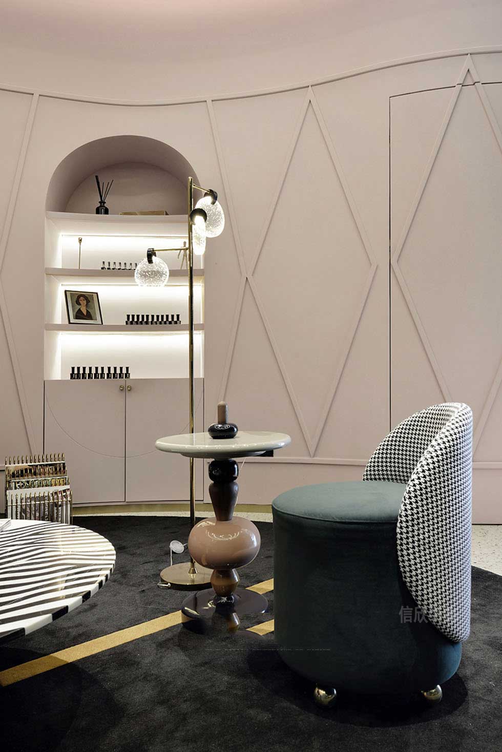 抽拉式如手風琴的沙發座椅,給人的感覺新穎獨特,坐在這里做美甲本身就是一種精致和高雅的生活方式,背后分層式的半圓弧展柜,方便客戶挑選喜歡的顏色,也是一個溫馨的展區。