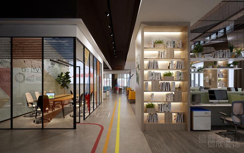 藝術立體的頂面,視覺效果強,溫馨的原木書柜加燈帶的設計,工作之余翻一本書,品一段故事,休息一下,給心情放個假,再重新出發。
