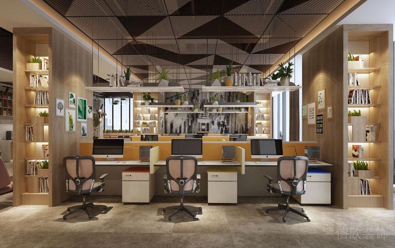 網吧式的小辦公室,頂柜兼具使用和收納的功能,同事間更多了幾分合作和交流,工作氣氛好。