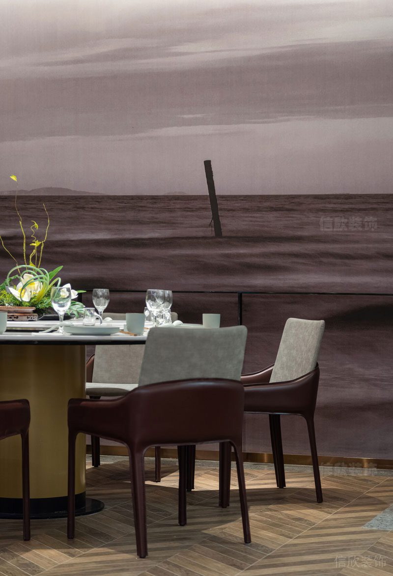 深圳市龍崗區中餐廳背景墻 明月般的墻飾,鏡子和風景畫的結合,似乎告訴人們,人有悲歡離合,月有陰晴圓缺,此事古難全,活在當下,珍惜此時此刻的相聚時光。