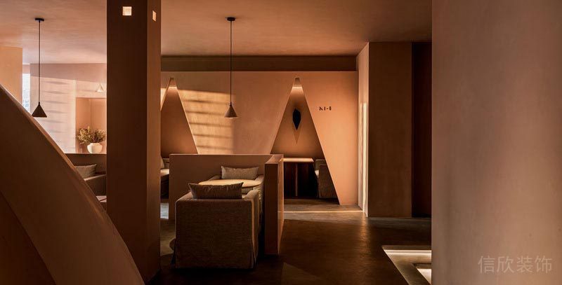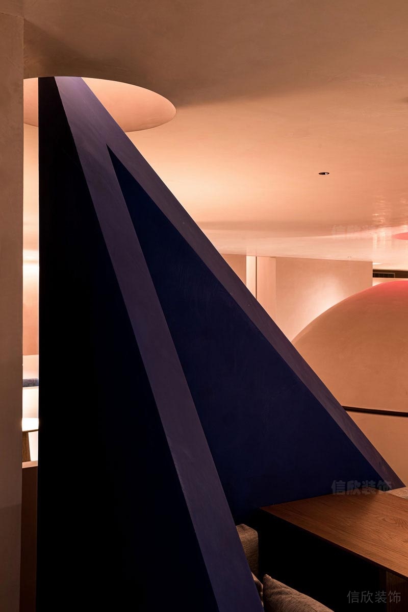三角形的造型利用,讓整個空間立體感強烈,充滿情趣,在暖光的照射下,宛如一副優美的畫作。