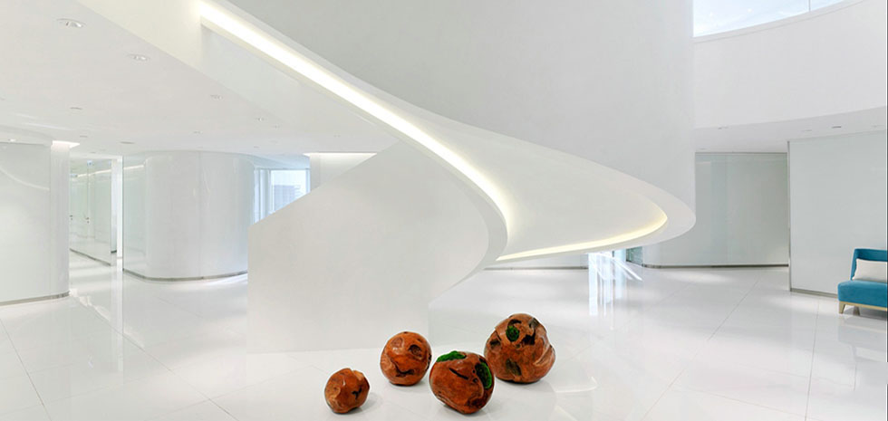 圓弧的設計感,優雅的圓弧樓梯和圓形頂,從造型流暢,行云流水般的感覺,通過光影的變化,給人造成一種開闊明亮,寬敞簡潔的視覺上的強烈沖擊感。