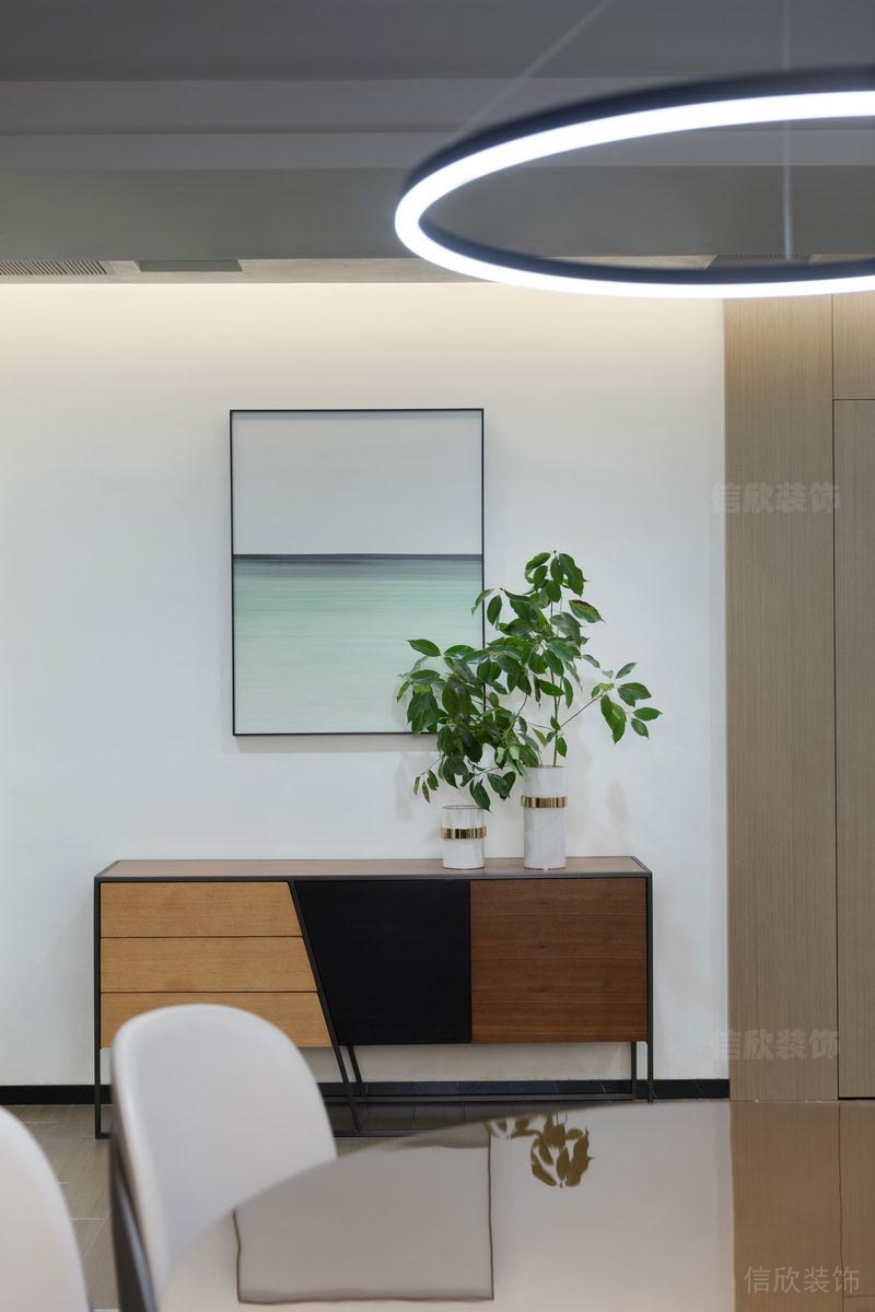 本案位于深圳中山區南頭東關·樂尚林居是一個現代簡約的裝修設計案例,現代風格外形簡潔、功能強,強調室內空間形態和物件的單一性、抽象性?,F代簡約風格,顧名思義,就是讓所有的細節看上去都是非常簡潔的。裝修中極簡便是讓空間看上去非常簡潔,大氣。裝飾的部位要少,但是在顏色和布局上,在裝修材料的選擇配搭上需要費很大的勁,這是一種境界。