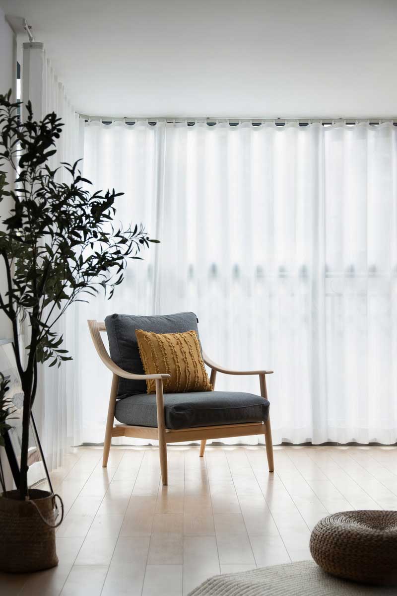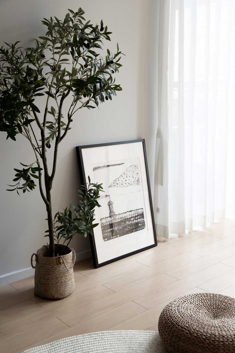 淺色原木系的黑色布藝沙發(fā),活動(dòng)式的綠植茶幾,不沾一絲的煙火之氣,卻獨(dú)有一份家的暖意,讓忙碌于都市嘈雜生活的我們,可以放下塵世間的繁瑣,讓身心在這一刻得到完全的放松