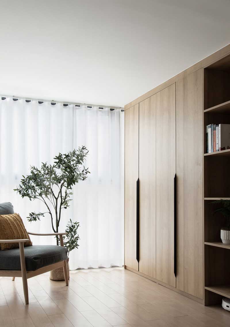 陽臺(tái)和客廳連成一體通鋪木地板的設(shè)計(jì)方式,比起大地磚給人的感覺更溫馨,更有家的氣息,使得客廳空間更寬敞和開闊,窗簾打開就能隨時(shí)沐浴在午后的暖陽下,拿一本書,靜靜的享受休閑的時(shí)光。