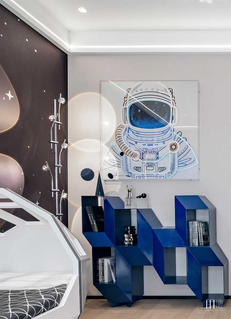 星空的4D立體壁紙,猶如火箭般造型的小床,開啟了孩子的好奇心,滿足對天空和浩瀚宇宙的幻想,夢里伴著最高的星空遨游,充分激發對知識的渴望,和對天文科學的愛好及探索。