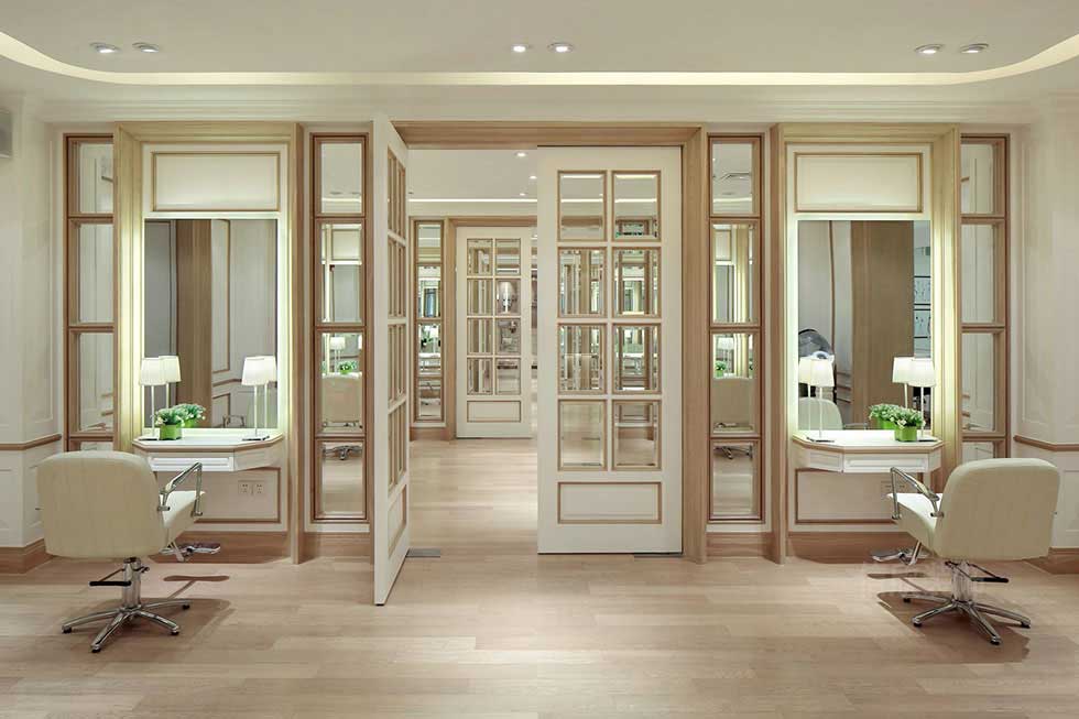 剪發(fā)區(qū)設(shè)計(jì)了實(shí)木的玻璃門,相比于造型區(qū),顯得更安靜和和諧,能讓發(fā)型師更專注于眼前的工作,歐式的半護(hù)墻板設(shè)計(jì),體現(xiàn)了簡(jiǎn)單的精致生活方式。