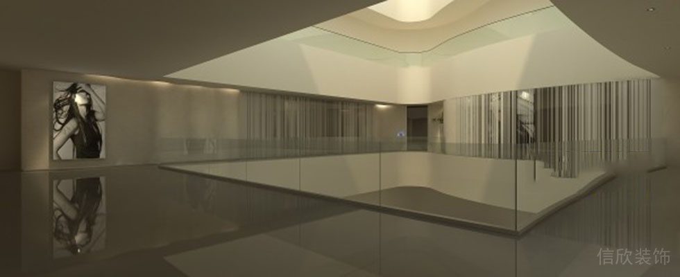 大廳的裝修的設計,整體采用純色和中空式的表現手法,使空間視野感開闊,然后用波浪形的墻面和石膏頂面的設計,增強了整個大廳的線條感,和三維立體感。