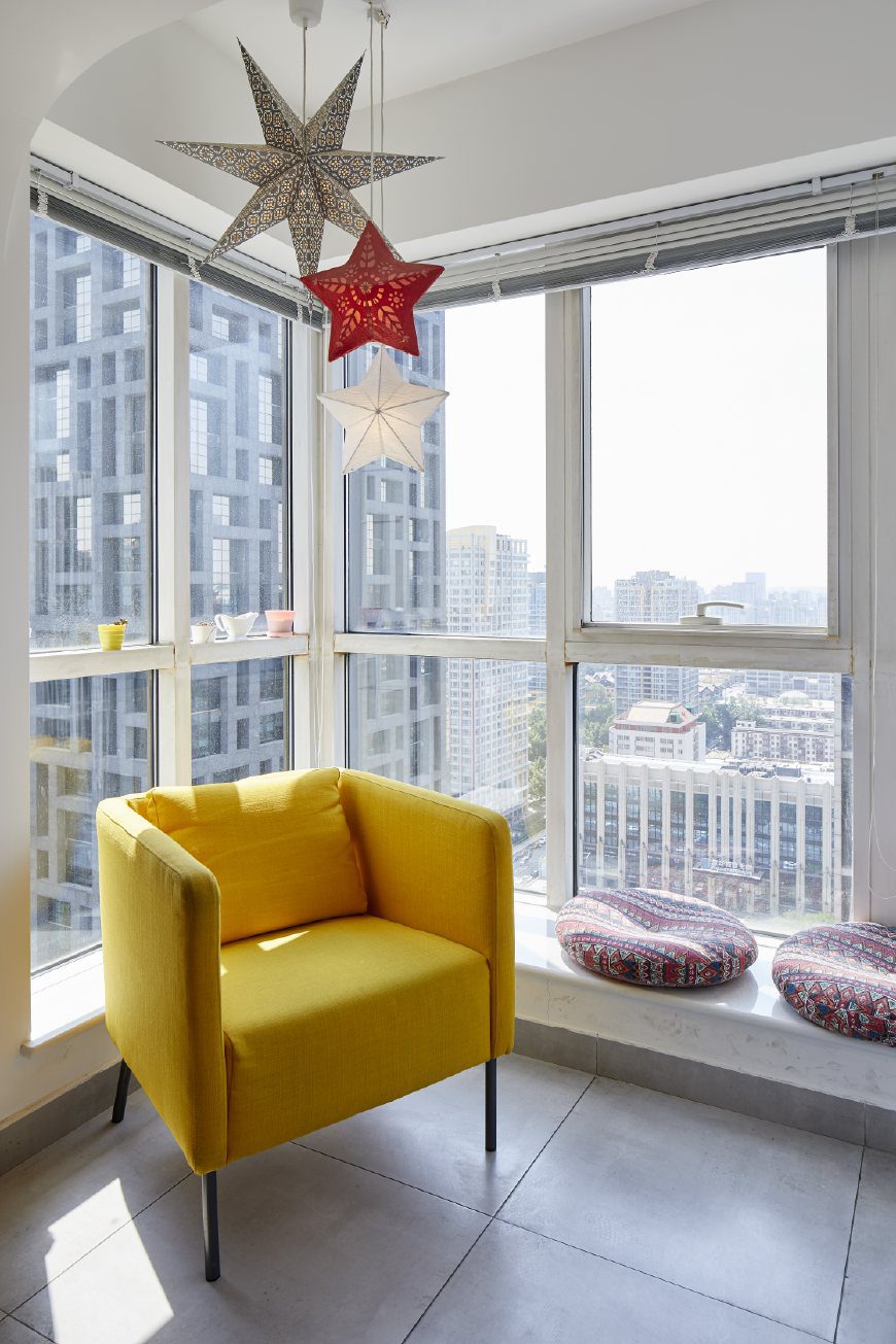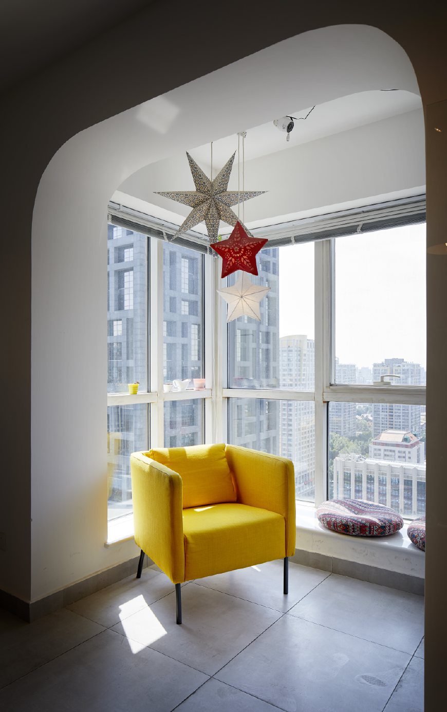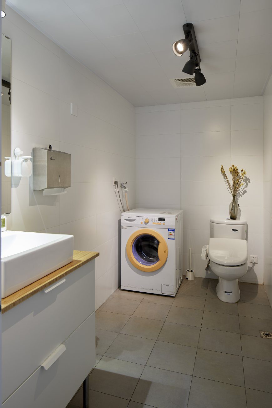 頂面的裝修設計,秉承北歐風的設計理念,最大限度的保持了原汁原味的結構特點,可以裸露在外的線管,加上黑色的鐵藝吊燈,簡單而實用,不加多余無用的點綴。