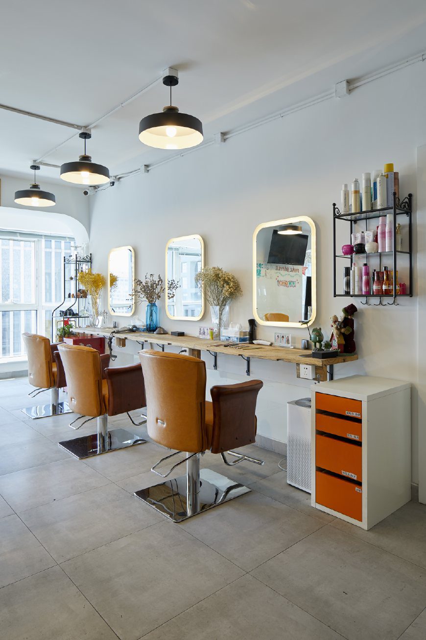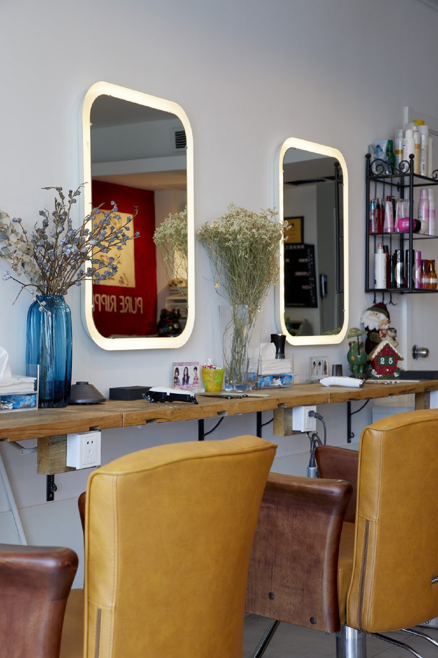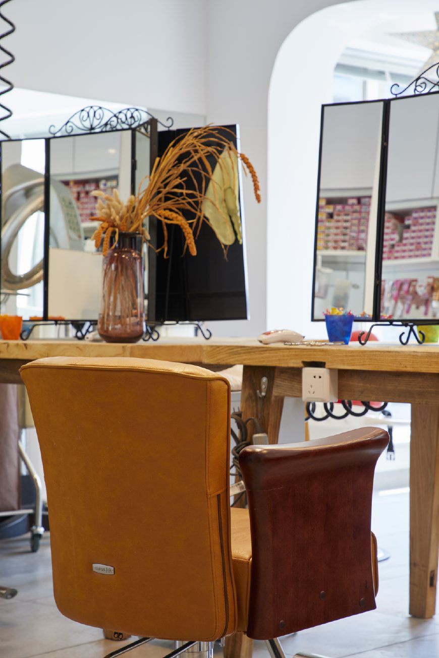 北歐小清新的主導風格,首先提高了凈漪美發在空間上的“辨識度”,白色乳膠漆墻面、實木工作臺和皮質美發椅,共同構成了一個舒適的美發空間。從業主的角度出發,這種風格造價低、施工快、好打理,也讓經營的壓力變得可以接受。
