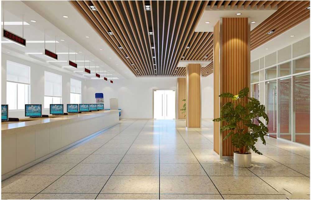 培訓(xùn)基地辦公大廳的設(shè)計(jì)上,采取了仿古磚的地面,經(jīng)久耐用,不容易出現(xiàn)污漬,石膏板和木藝格柵頂?shù)慕Y(jié)合,現(xiàn)代而又充滿了時(shí)尚雅致的氣息。