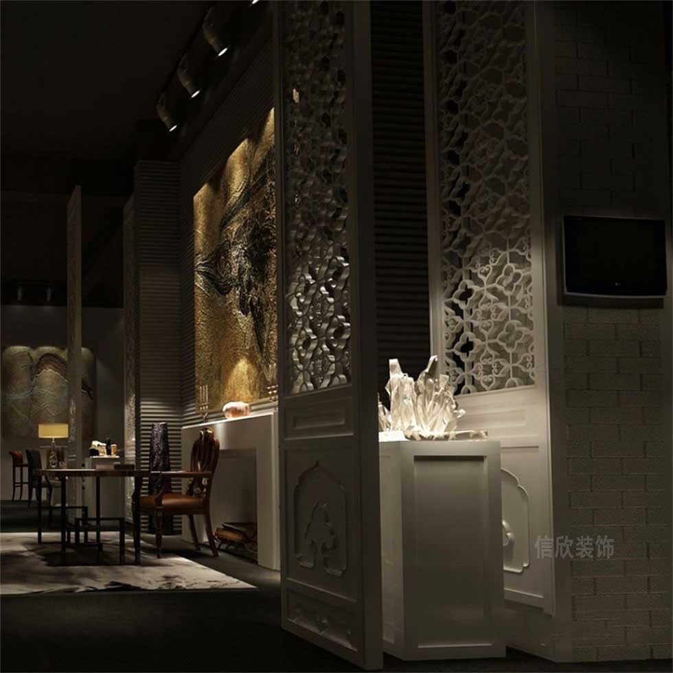 設計理念:本案是一所混合型風格的收藏品展廳裝修設計案例,混合型風格是現在比較潮流的一種裝修風格,它將古今中西融合于一體。如:傳統屏風、擺設配以現代風墻面及門窗、沙發,給人一種時尚、與眾不同的感覺。而且混合型風格的裝修在設計中不拘一格,總能給人煥然一新的感受。