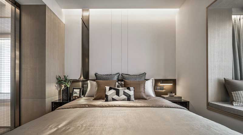 臥室最私密也是最自我的空間, 空間與布局的整體感便是安全感的最終表現, 米色系與白色與自然光線融為一體, 白天溫暖舒適 夜晚詩意朦朧, 整個空間溫馨又不失意境, 搭配精心選擇的飾品, 提升整個臥室的自我風格。