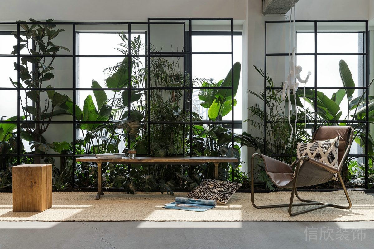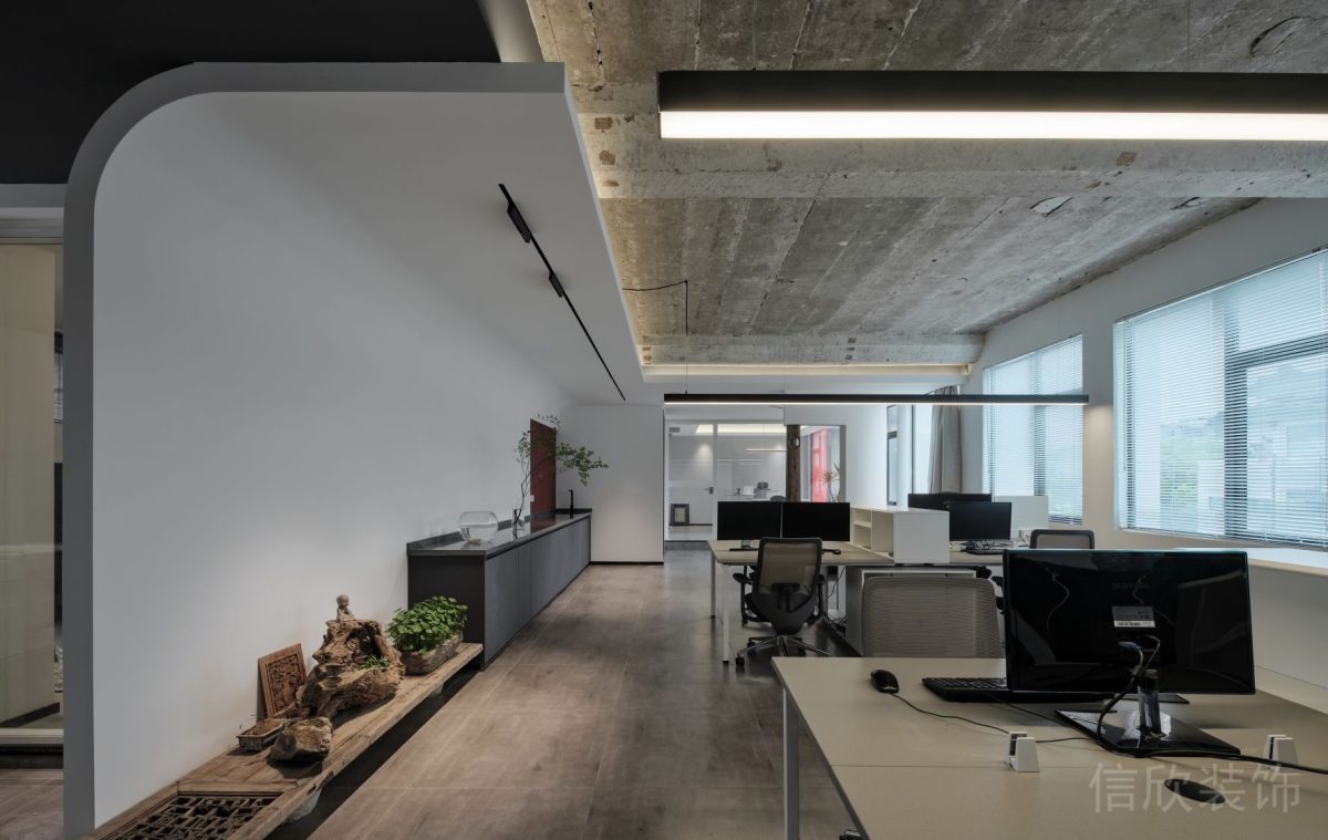 辦公室裝修設計從天花地面到墻面都采用白色設計整體空間簡潔,黑色軌道燈點綴空間。