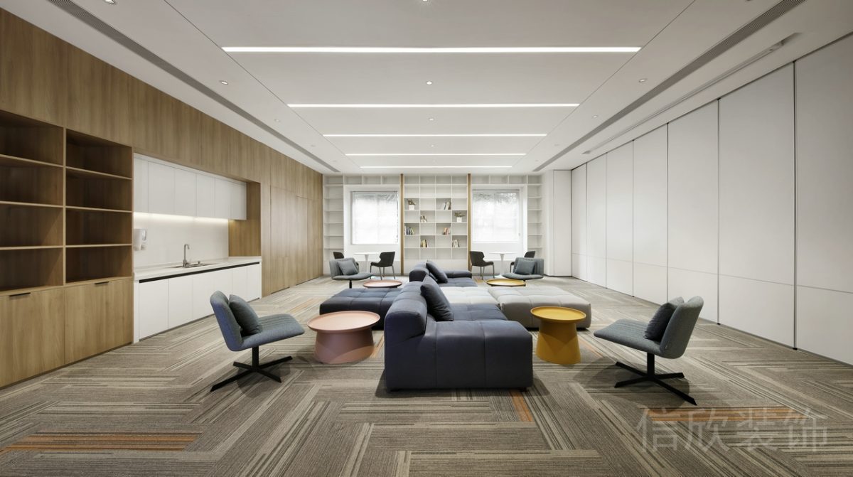 前臺區(qū)域的玻璃隔斷與鏡面天花板相結合,增強了視覺的延伸感,同時彰顯企業(yè)形象。會議室則配備了現(xiàn)代化的LED燈飾和先進的音視頻設備,確保會議的高效進行。休息區(qū)則設有舒適的沙發(fā)和綠色植物,提供放松和交流的空間,體現(xiàn)出關懷員工身心健康的理念。