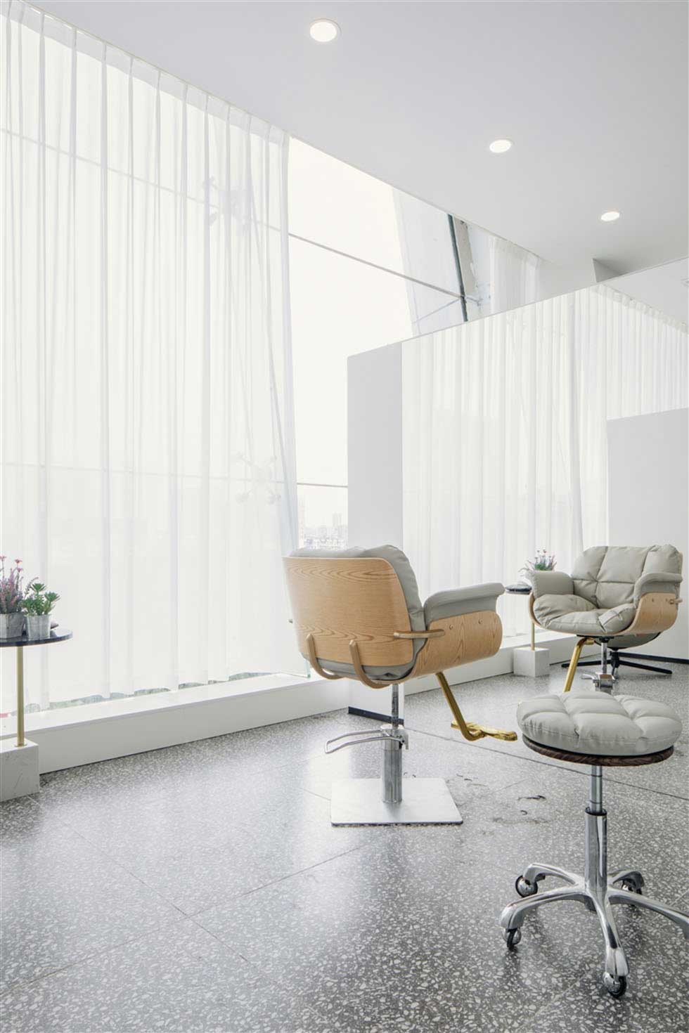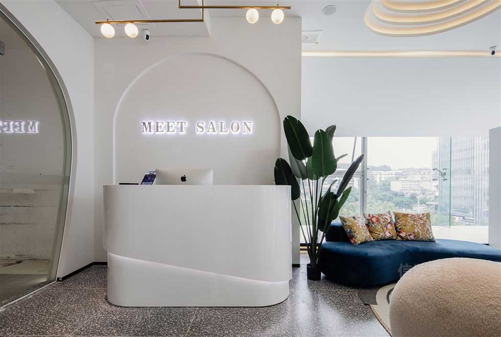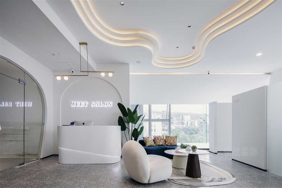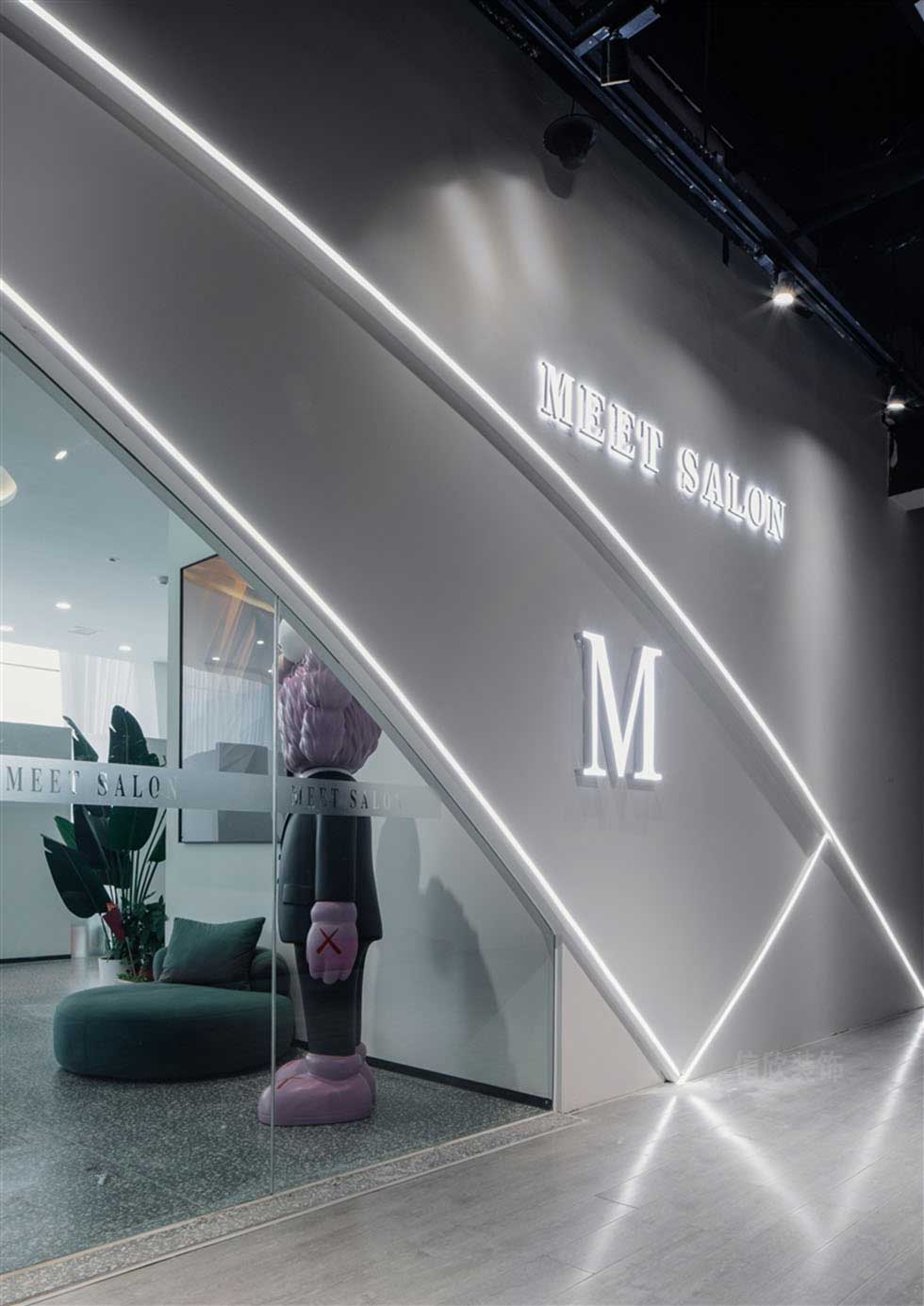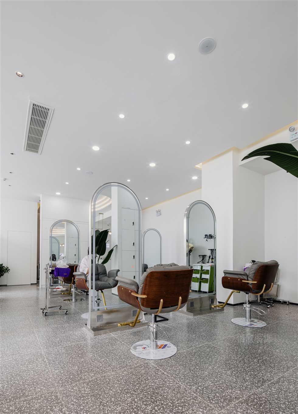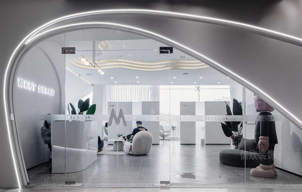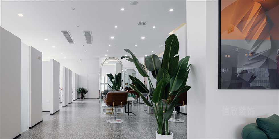 設計理念:本案是一所現代風格的大型高端美發沙龍裝修設計案例,