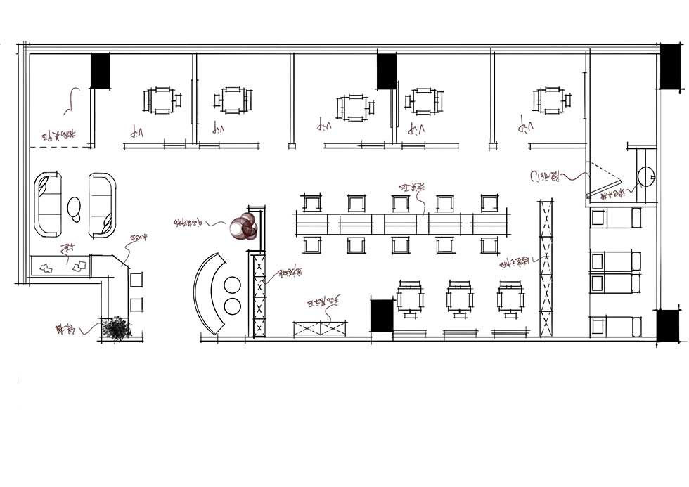 ??初稿永遠是初稿。甲方永遠都不安于現狀,尤其是美發的設計師們。功能完善的同時要滿足視覺感官 要滿足空間感官??要滿足……..(丟~)、