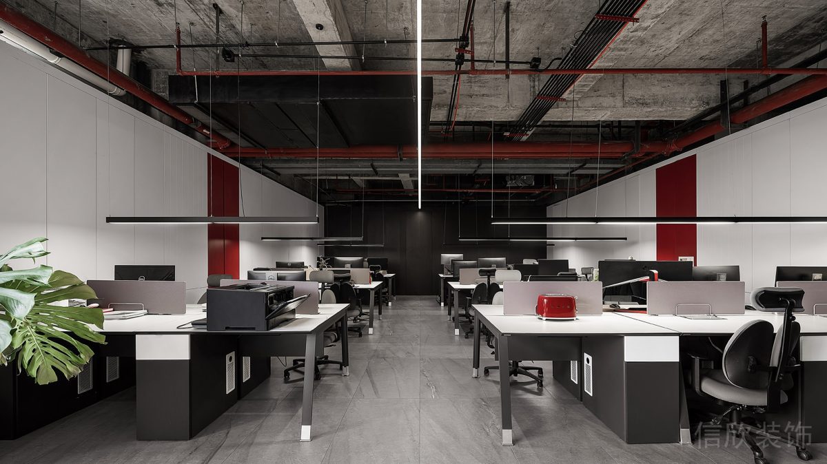 此次分享的項目位于深圳市福田區梅林路48號理想時代大廈,是一家生物科學公司的辦公室裝修設計工程,全局的空間設計及現場施工均由我司負責獨立完成,辦公室所有區域合共的裝修面積為300平方米,我們的設計團隊希望整體空間的格調可以強調出該公司的產業屬性,因此在辦公室的塑造中重點通過機械工業風的裝修設計貫徹于每個部位,從而顛覆人們對以往傳統辦公室的刻板印象,其中辦公室裝修設計的最大的亮點就是對重新特制的鋼瓶、鐵管及相關配件組合成工作空間的結構形體,建造出具有創新感與粗獷感兼具的環境風貌。