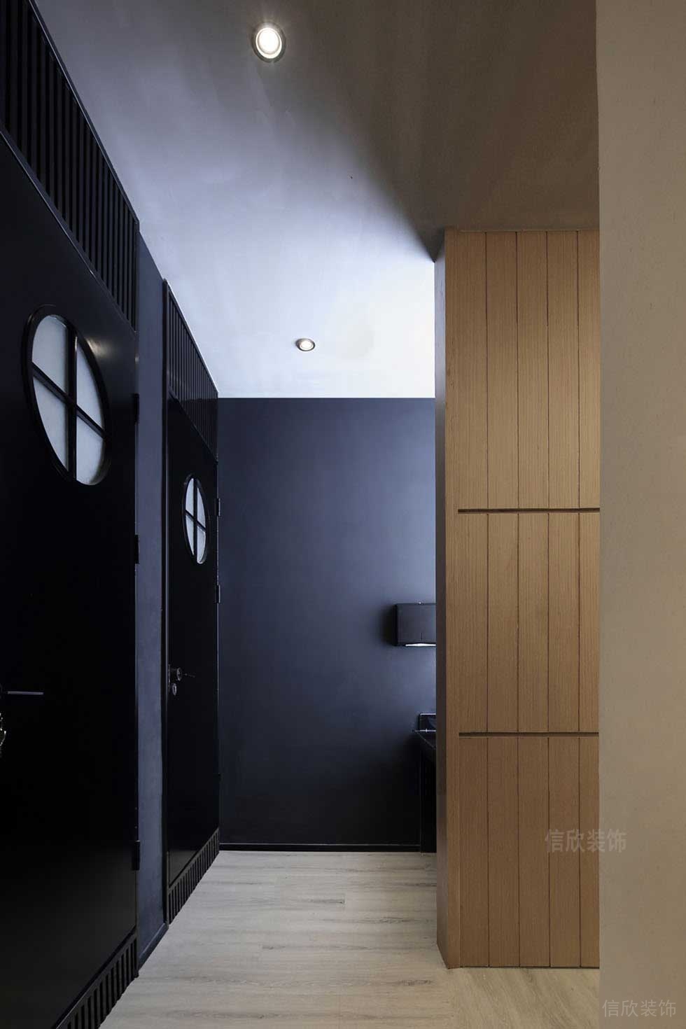 干濕分離的衛(wèi)生間,配色上選用高級黑,定制的門上點綴簡單的造型,兼具質感與時髦感。