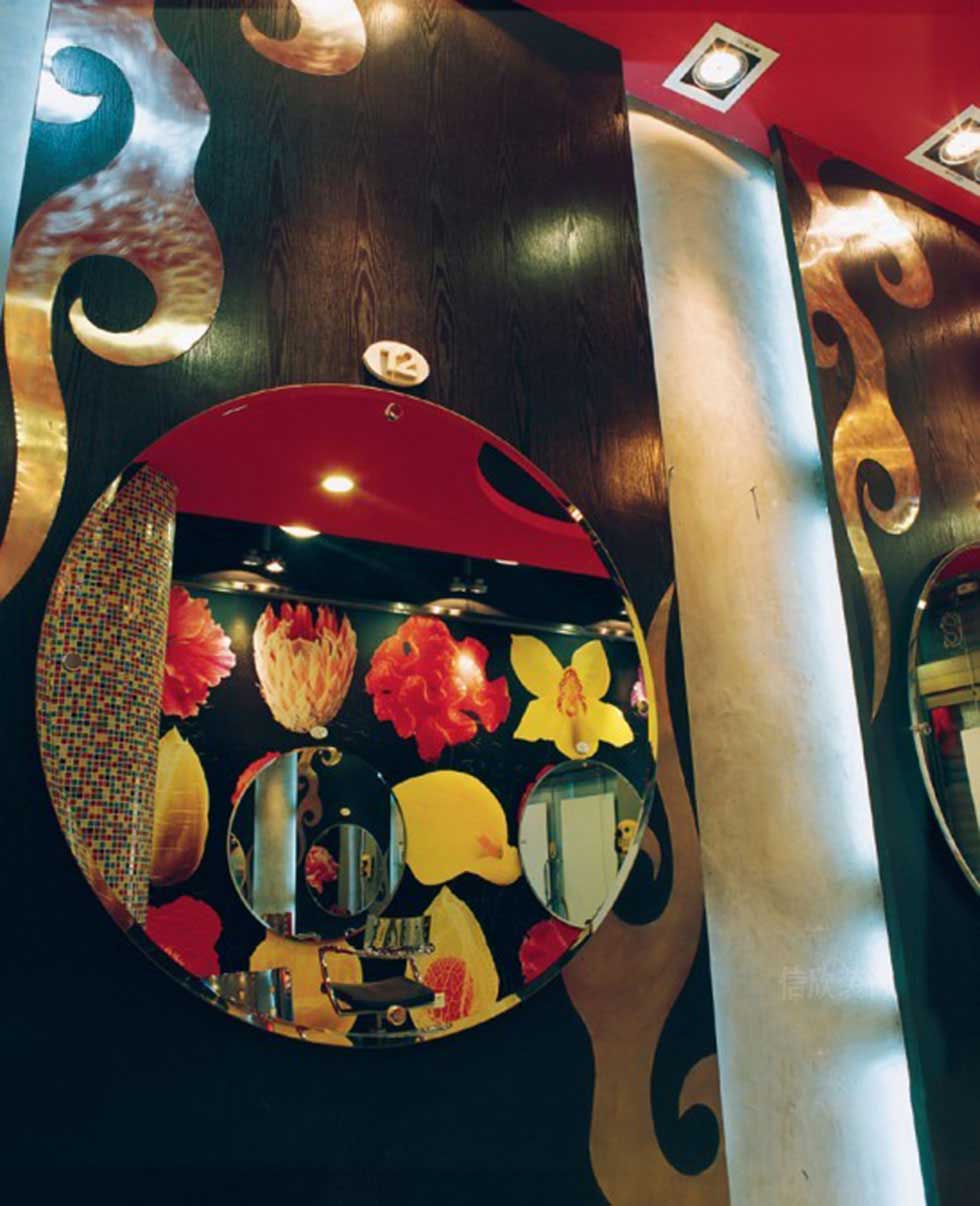 剪發區的設計,整體的理念,來自于多元素的拼接,和東西方美學藝術結合的抽象感,莊重的氣氛,在彩色馬賽克元素的打破和插入中,變的活躍,精美,讓人沉醉在古典與現實的幻境中。