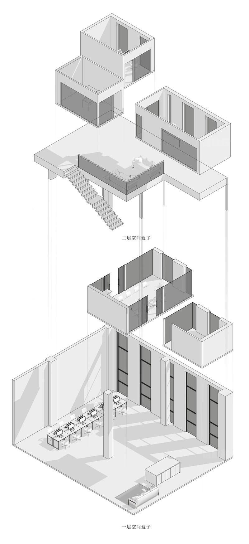 深圳龍崗云里智能園辦公室設計方案,兩層的辦公空間設計,一種藝術于創意的的結合體現,首層功能分區明顯,由于層高足夠,完全滿足向上逐層擴大,有了更加充足的辦公空間。同時,這開放的兩層也可靈活轉化為藝術和科技類主題,設計之初處我們把這兩層朝著藝術的方向切入”。二層相對于一層,面積縮減了很大一部分,功能上反而更加復合,可以根據具體要求,來規劃我們的設計。