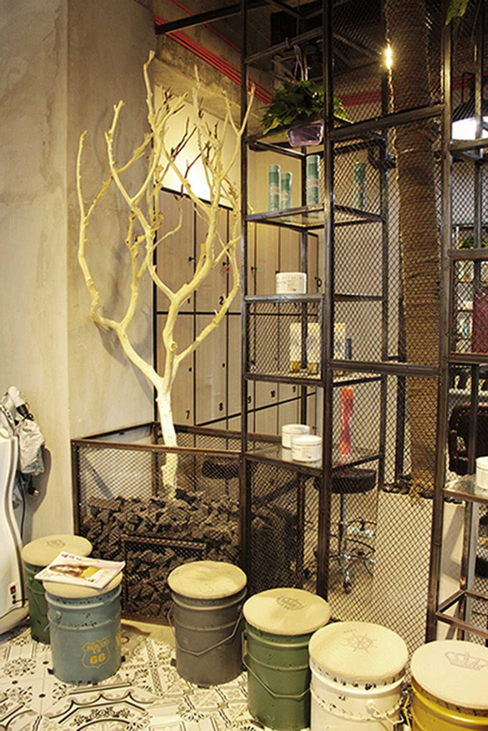設(shè)計理念:本案是一所工業(yè)風(fēng)的美發(fā)店裝修設(shè)計案例,工業(yè)風(fēng)在墻面與地面的裝飾上一般都會選擇裸露的磚塊,或者在磚塊上粉刷黑色、白色或是灰色作料,粗糙的質(zhì)地、斑駁的機理效果都會表現(xiàn)出一種舊舊的卻又非常時尚粗獷的視覺效果。水泥墻或者水泥地面是工業(yè)風(fēng)格裝修的經(jīng)典元素之一,水泥墻面泛著冷靜的光澤看似冷漠卻又非常具有現(xiàn)代感。墻面有時會用涂鴉的裝飾方式表達它的特別之處。頂面水泥頂面會保持原有色彩或者涂刷成黑色,原始的水電管道排布其下,或隱秘或在燈光的照射下偶爾閃現(xiàn)出一道金屬光,神秘感覺十足。