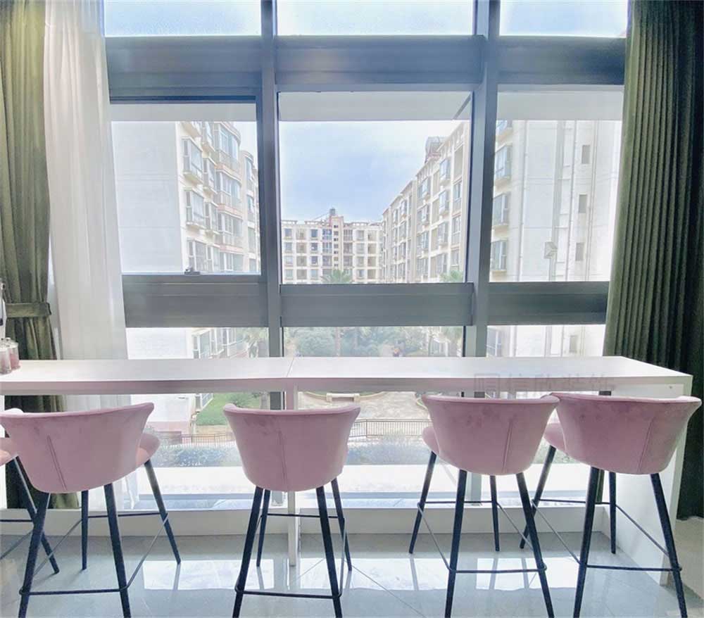 前廳沿用粉色為主色,配上一抹養(yǎng)眼的綠意,清新而舒爽,圓弧形的沙發(fā)設(shè)計上形象生動,和輕奢風(fēng)的圓桌和皮藝沙發(fā)結(jié)合,賦予了簡單的奢華感。