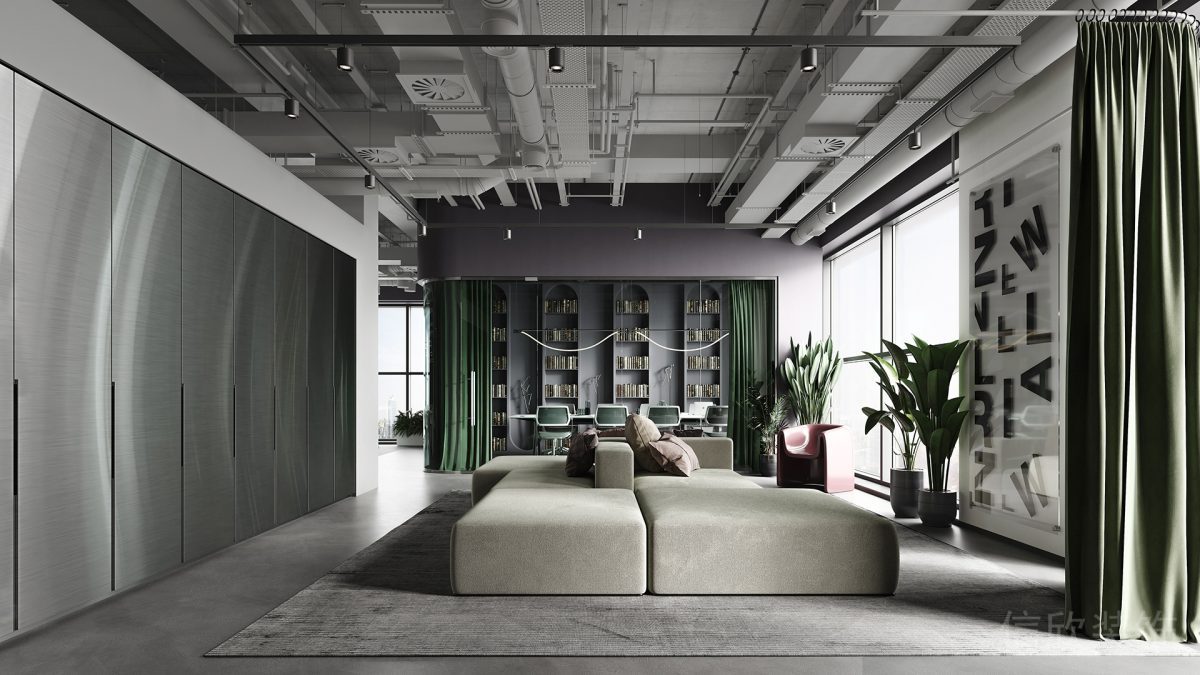 數字指引墻體設計鏤空內嵌式設計地毯效果墻體色彩搭配效果辦公室