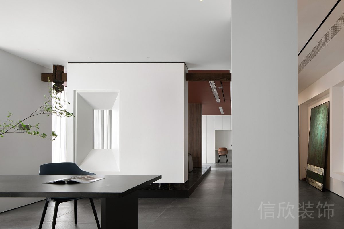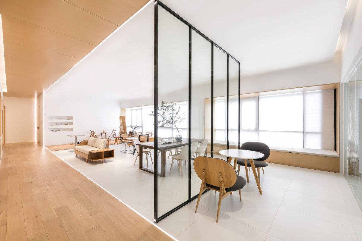 隔斷的邊框采用黑色金屬材質,提供了強烈的對比感,同時增加了現代感和工業風格。