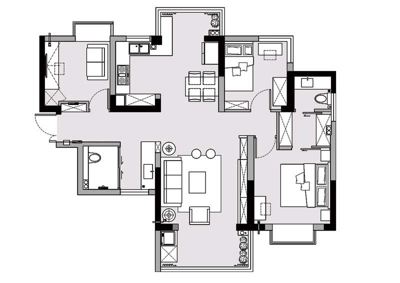 設(shè)計理念:本案是一所現(xiàn)代簡約風(fēng)格的家居新房裝修設(shè)計案例,現(xiàn)代風(fēng)格外形簡潔、功能強(qiáng),強(qiáng)調(diào)室內(nèi)空間形態(tài)和物件的單一性、抽象性。