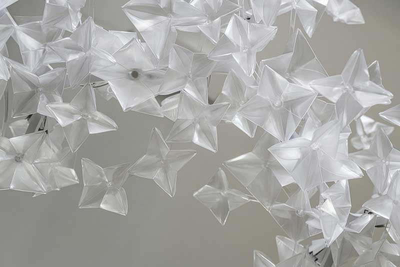 Slamp·Clizia吊燈垂下白色的星朵,優雅輕盈,營造出一種純潔的白色夢幻。