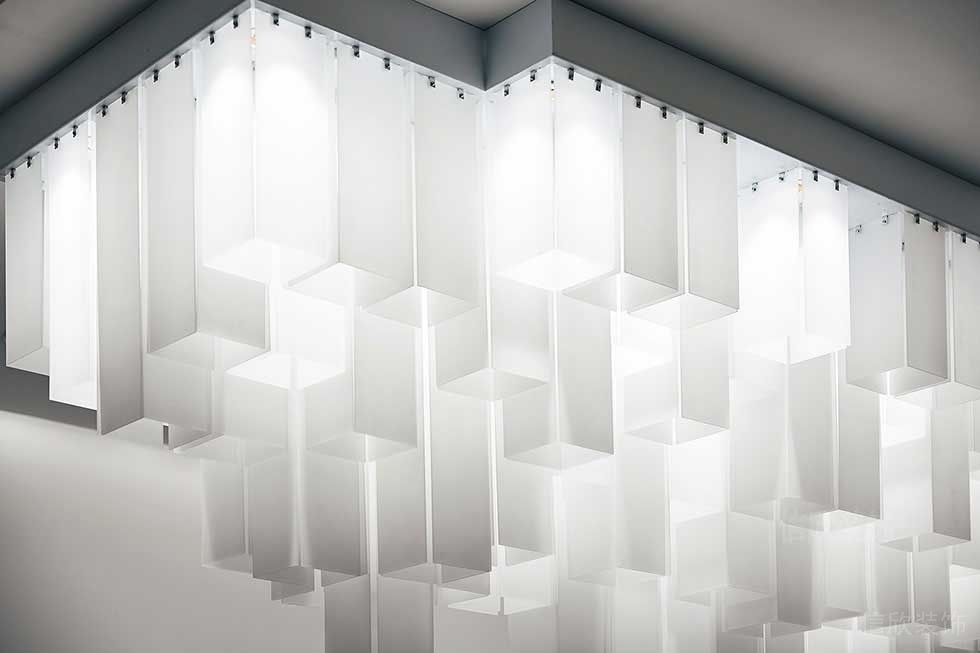 理發區是一個全開放的區域。整齊劃一的座位排布,形成規整的序列,搭建起理發師展現精湛手藝的舞臺。佇立在在舞臺中央的藝術雕像和懸掛在天花下的球體燈飾,則在打破這種均質關系,為整個空間注入靈動的藝術氣息。燈光照明上,設計師采用了盡量克制的方式,以理發區中央的管形藝術吊燈來提亮空間,使顧客能夠沉浸在柔和的氛圍之中。