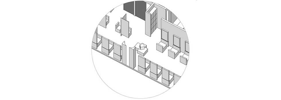 ▼隔斷面擬定了等候區與理發區之間的邊界